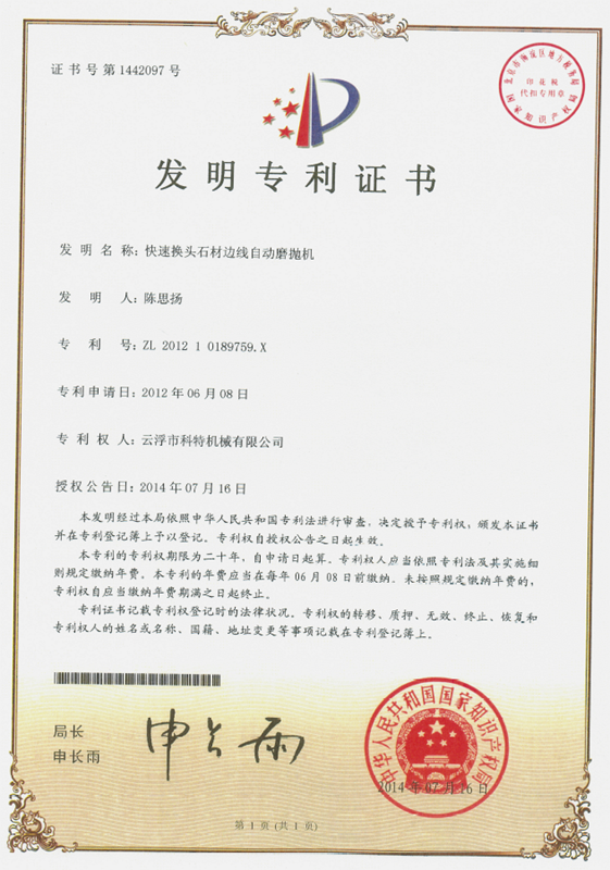 企業(yè)組建了“云浮市石材機械裝備工程技術(shù)研究開發(fā)中心”,并與高校和科研院所密切合作,致力于光機電一體化產(chǎn)品的研發(fā)、生產(chǎn)、銷售和服務(wù)。主要產(chǎn)品有框架鋸、全自動連續(xù)磨拋機、橋式自動切割機、全自動仿形石線機、數(shù)控金剛石繩鋸、裁切機等。產(chǎn)品具有自動化程度高、加工精度高和生產(chǎn)效率高等特點。產(chǎn)品除國內(nèi)銷售外,還出口到歐美、東南亞、韓國、印度、中東、非洲、俄羅斯、澳大利亞等國家和地區(qū),深受用戶好評。“橋式自動切割機”被認定為廣東省高新技術(shù)產(chǎn)品,擁有發(fā)明專利1項、實用新型專利1項。